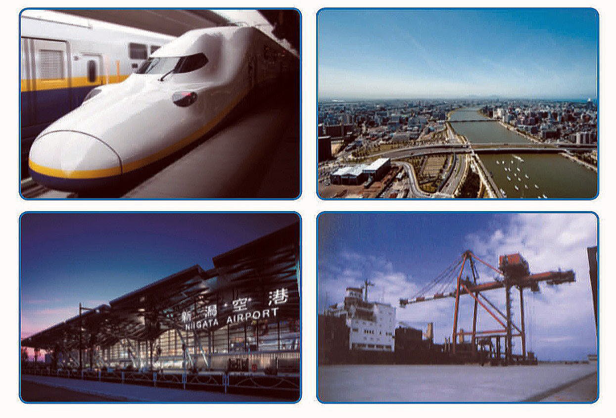 新潟县拥有「新干线」、「高速公路网」、「空中航线」、「港口」